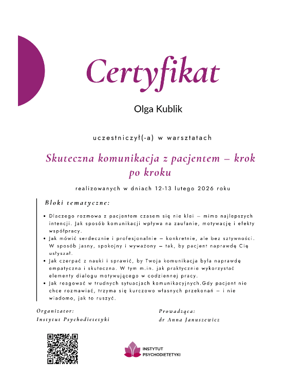 I tak znalazłyśmy się w tym miejscu – w punkcie, w którym powiedziałam „a” (w czerwcu otrzymam dyplom ukończenia psychodietetyki), ale jeszcze nie zamykam ust. Po obecnych studiach czekają mnie kolejne, które już zaplanowałam. Wierzę, że pogłębianie wiedzy jest kluczem do tego, by pomagać lepiej.